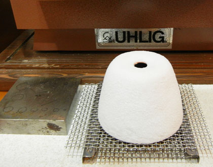 6. 銀箔を貼る ⇒ 焼成 ⇒ 銀用白透をふりかける ⇒ 焼成