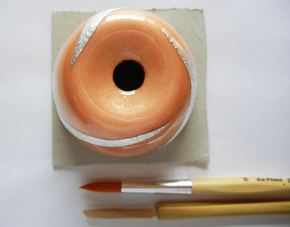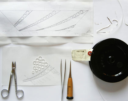 7. 銀線を折り曲げる ⇒ 植線 ⇒ 白透を薄くふりかける ⇒ 焼成